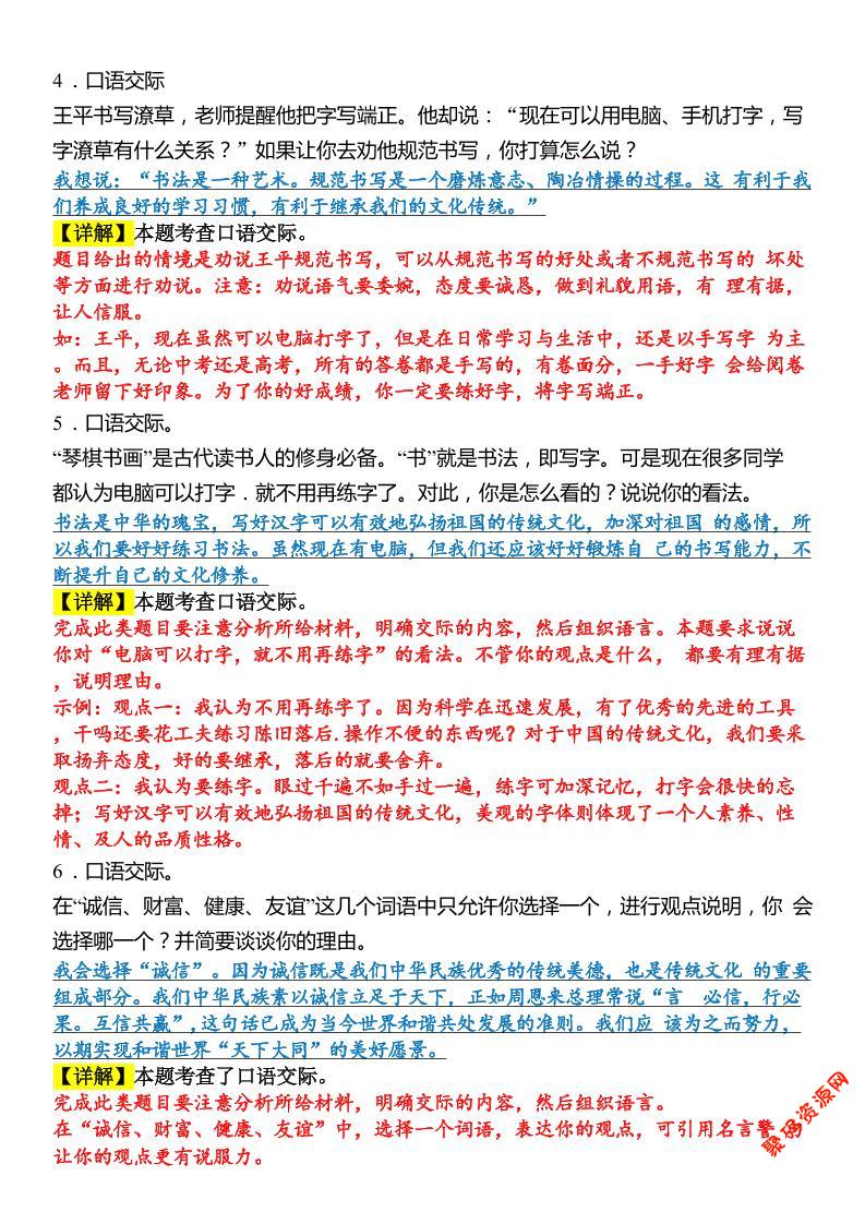 聚码网 六年级 六上语文【期末口语交际专题训练】(答案版)8页 http://www.appstore168.com/98758.html