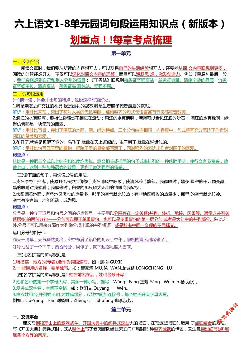 聚码网 六年级 六上语文1-8单元园词句段运用知识点(新版本)docx http://www.appstore168.com/98763.html