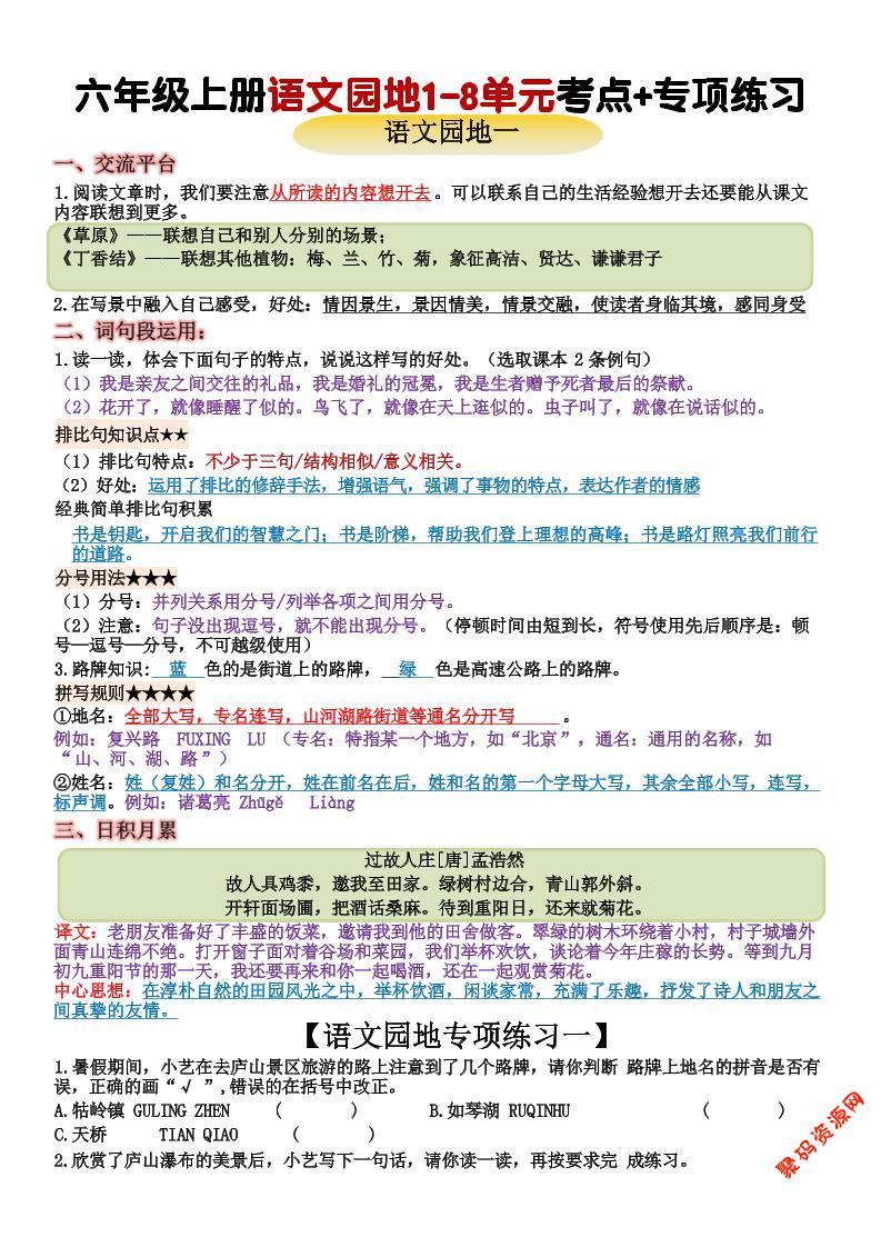 聚码网 六年级 六上语文+语文园地重点归纳(15页 http://www.appstore168.com/99017.html