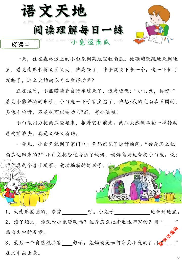 聚码网 二年级 二上语文阅读理解每日一练60篇(46页) http://www.appstore168.com/99022.html