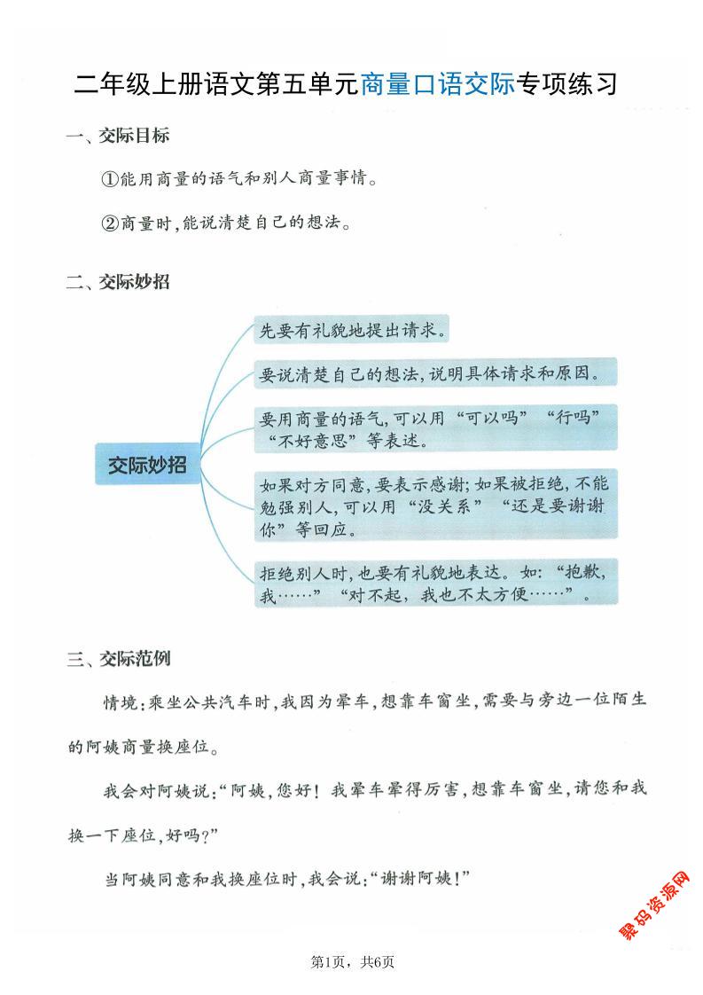 聚码网 二年级 二上语文第五单元商量口语交际专项练习(7页) http://www.appstore168.com/99035.html