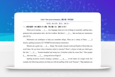 - 八年级上英语Unit7提升卷(沪教版) 2025-11-30
