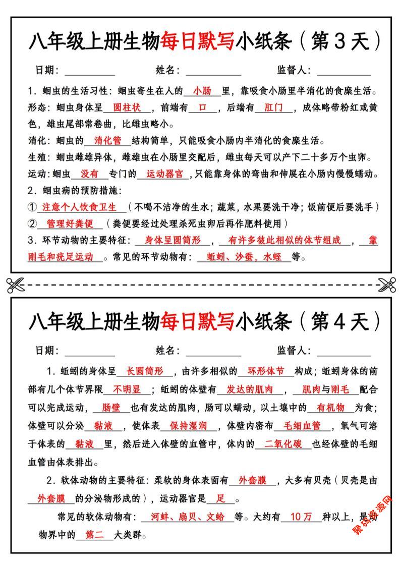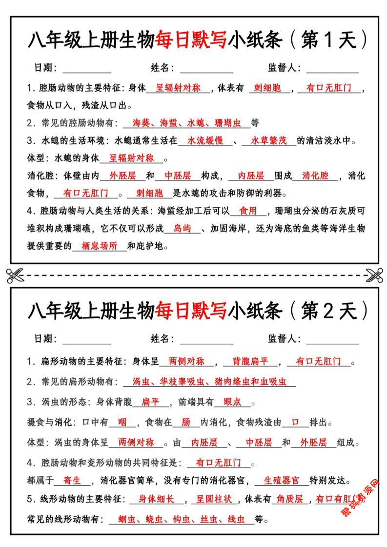 聚码网 八年级 八年级上册生物每日默写小纸条【答案版】 http://www.appstore168.com/99383.html