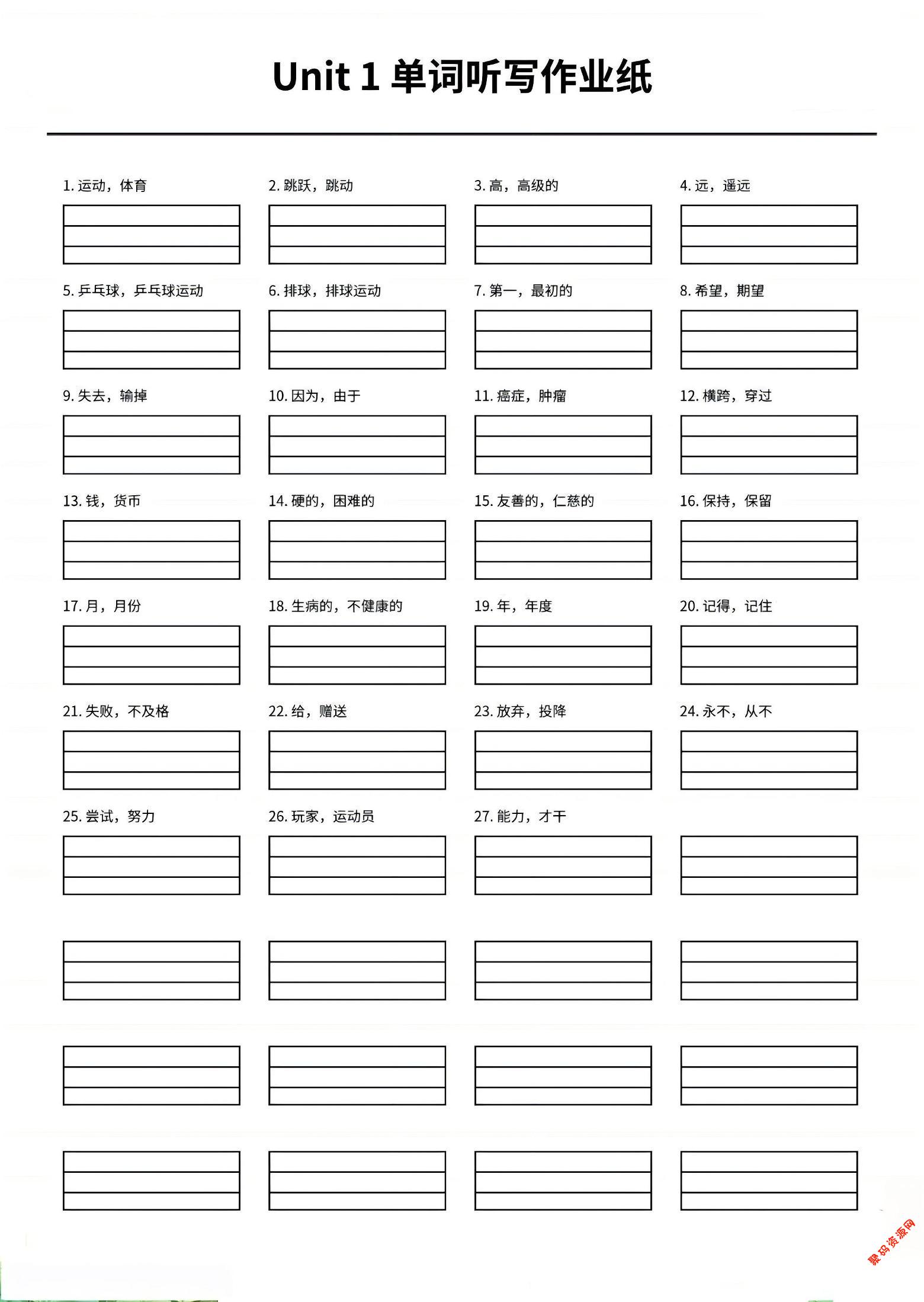 聚码网 四年级 四年级上英语1-6单元单词听写作业纸《外研版》 http://www.appstore168.com/99548.html