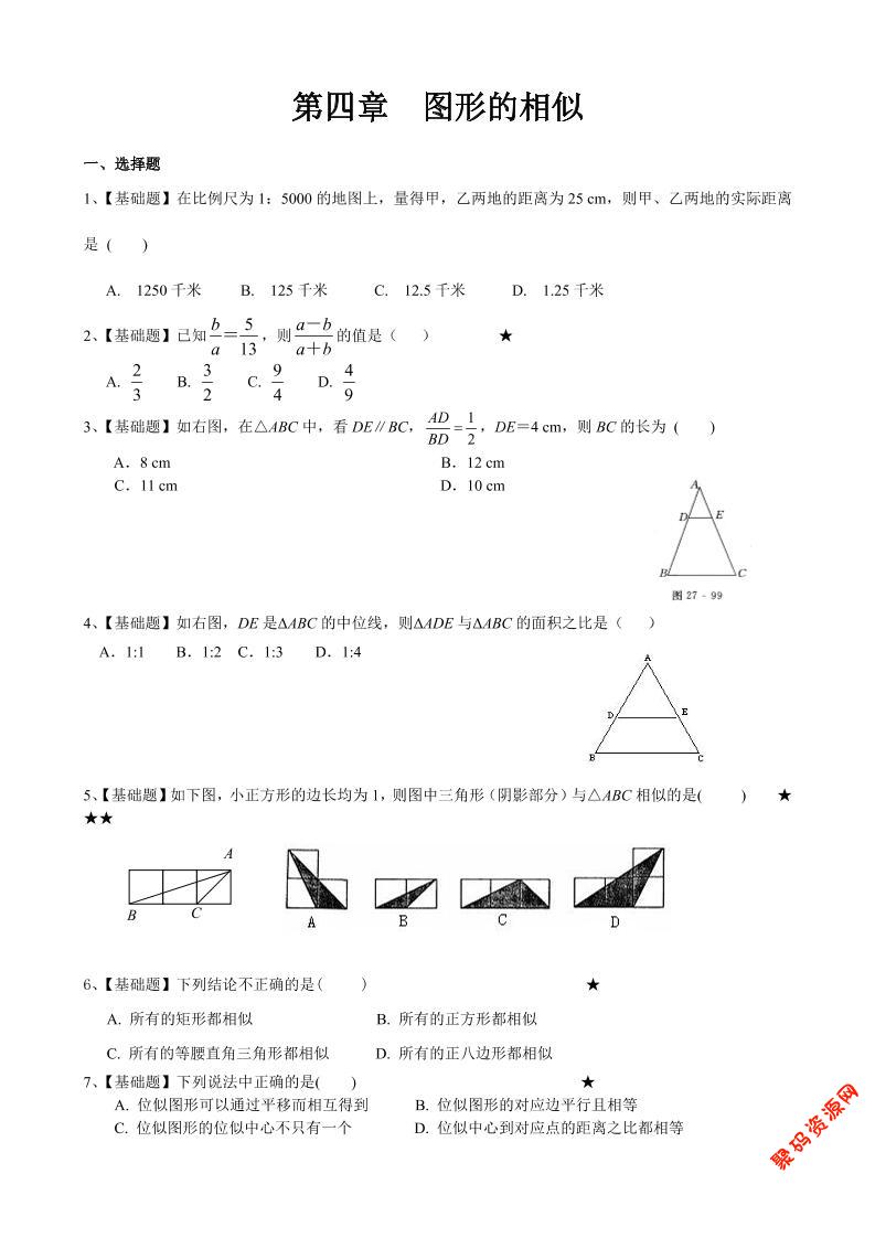 聚码网 九年级 九年级上数学第四章综合练习(北师大版) http://www.appstore168.com/99579.html