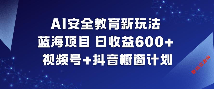 AI安全教育新玩法,蓝海项目,日收益6张+,视频号+抖音橱窗计划