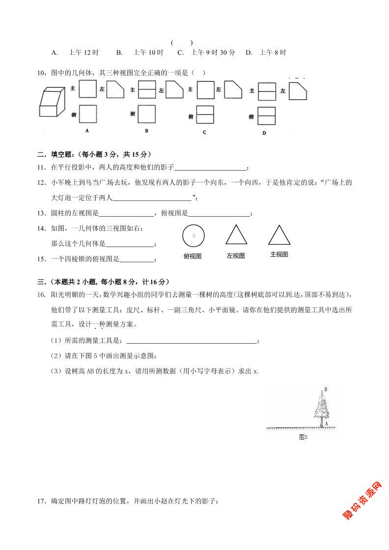 - 新九年级上数学第1次月考(沪教版) 2025-12-08