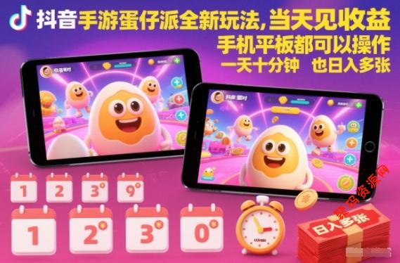 抖音手游蛋仔派对全新玩法,当天见收益,手机平板都可以操作,一天十分钟也日入多张【揭秘】