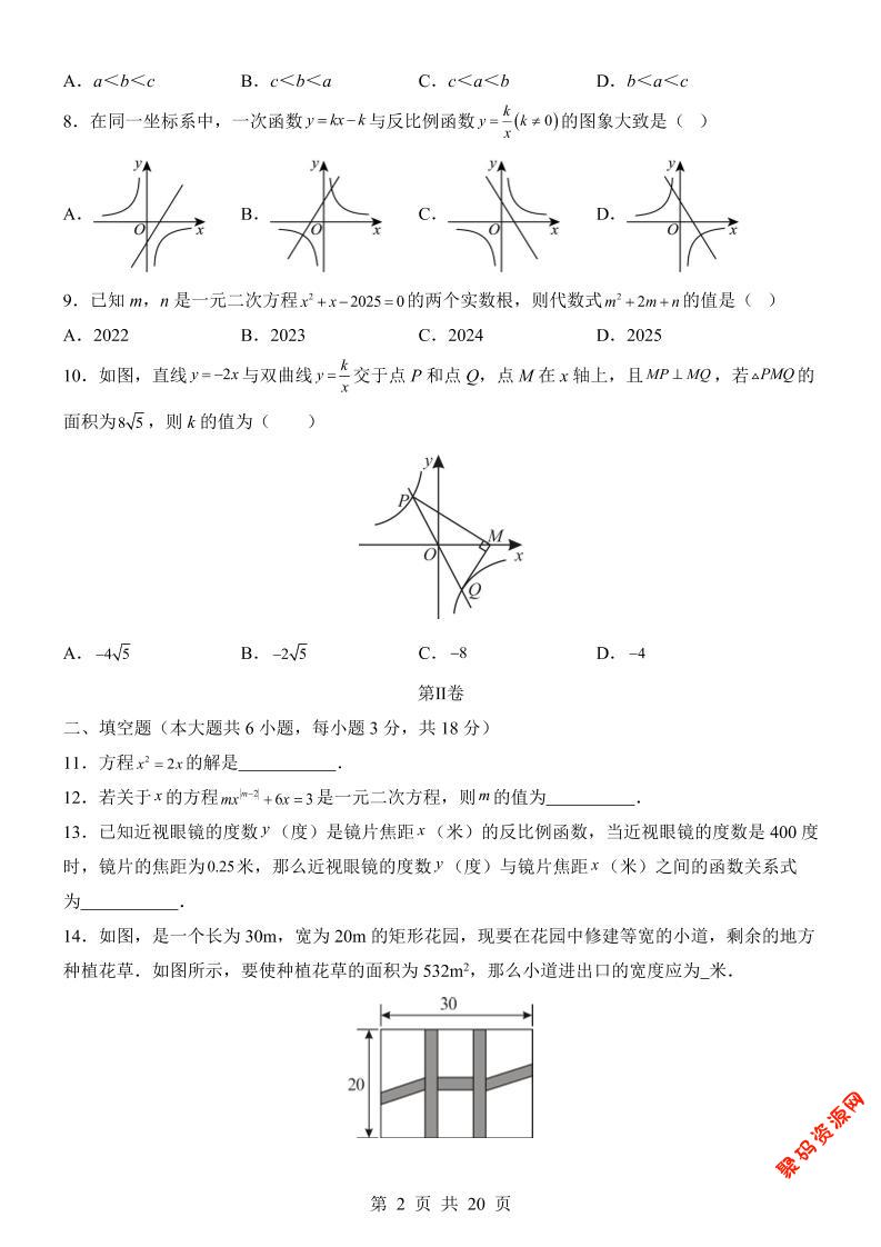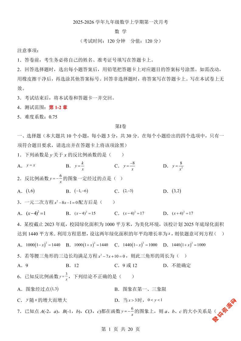 - 新九年级上数学第1次月考(浙教版) 2025-12-08