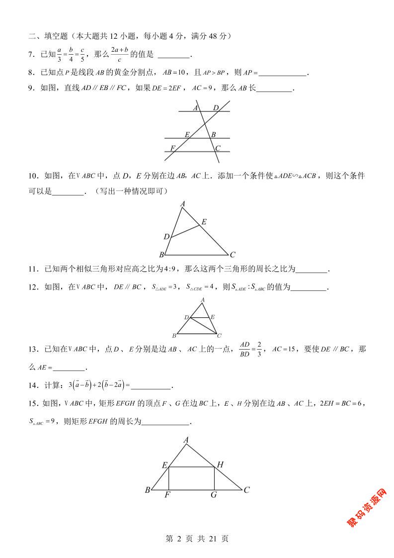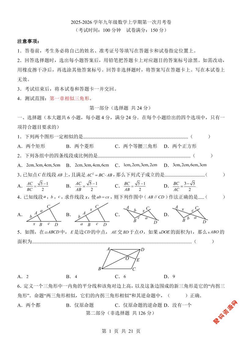 - 新九年级上数学第1次月考(沪教版) 2025-12-08