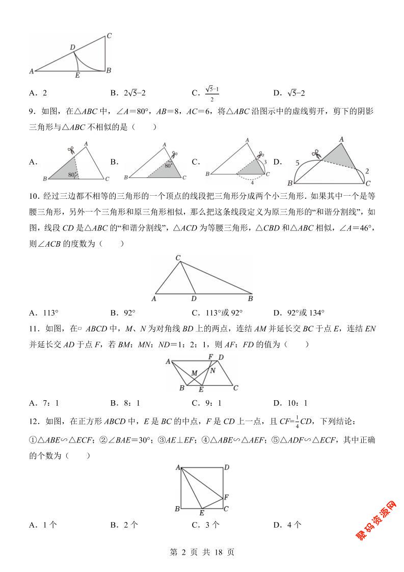 - 新九年级上数学第1次月考(沪科版) 2025-12-08
