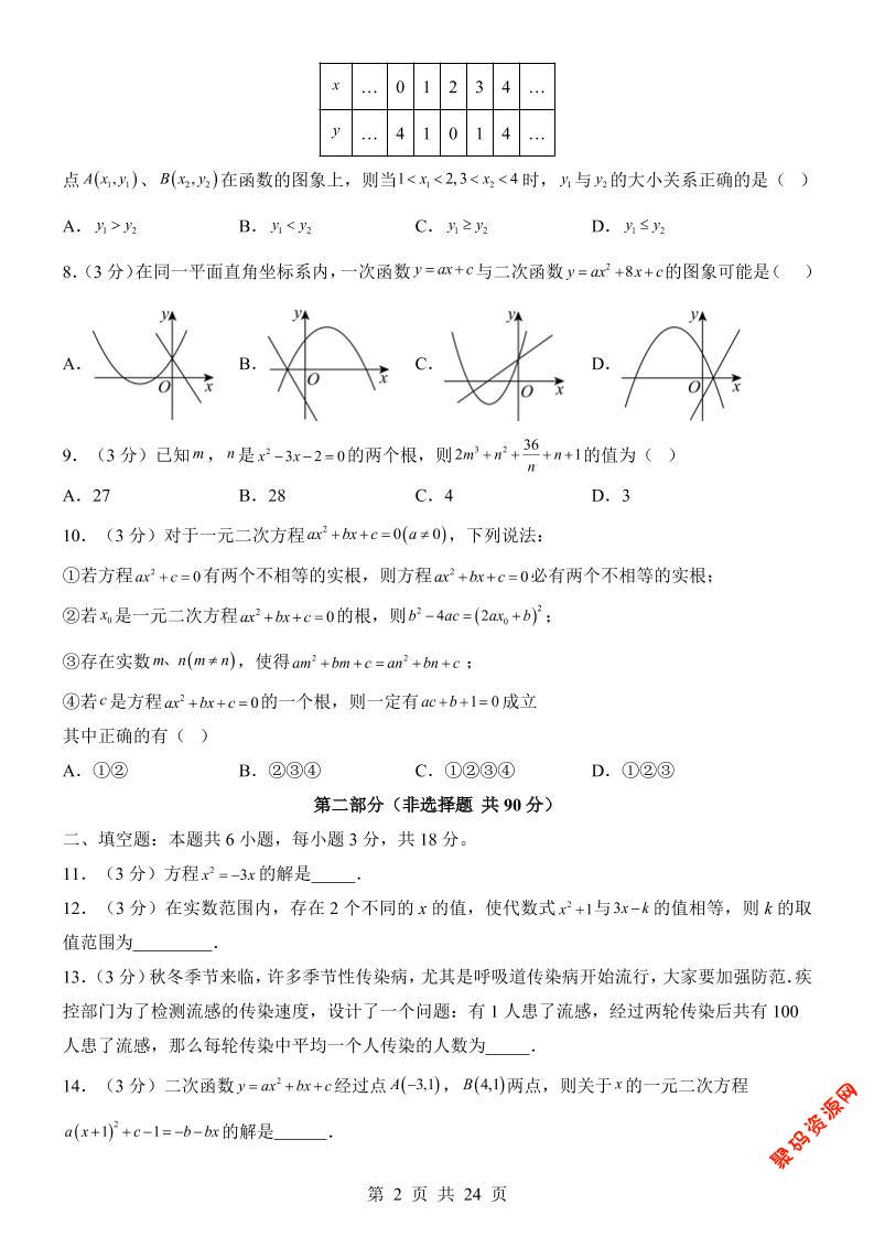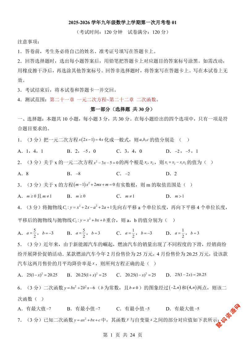 - 新九年级上数学第1次月考01(人教版) 2025-12-09