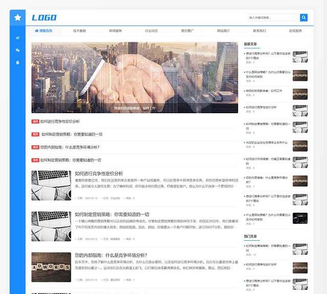 (自适应手机端)蓝色个人技术博客网站pbootcms模板 响应式宽屏大气的新闻博客网站源码下载