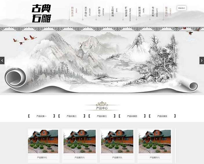 (PC+WAP)艺术石雕雕刻类pbootcms企业网站模板 古典水墨风格网站源码下载