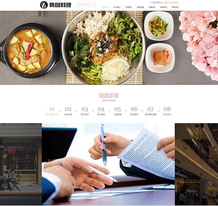(自适应手机端)pbootcms餐饮美食小吃连锁店网站模板 HTML5韩国料理加盟网站源码下载