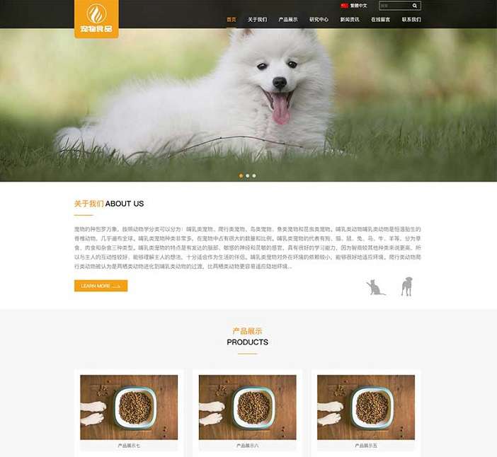 PbootCMS内核开发的网站模板,该模板适用于宠物粮食网站、猫粮狗粮网站等企业,当然其他行业也可以做,只需要把文字图片换成其他行业的即可;