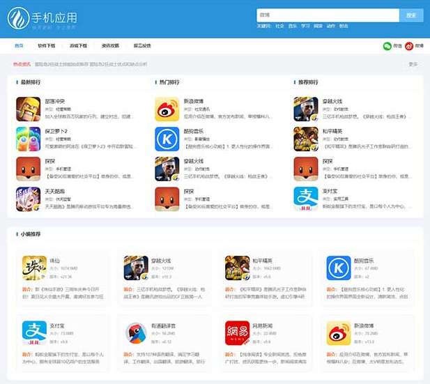 PbootCMS内核开发的网站模板,该模板适用于软件下载网站、APP应用下载网站等企业,当然其他行业也可以做,只需要把文字图片换成其他行业的即可;