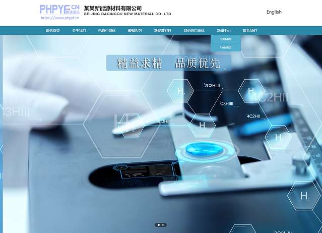 pbootcms内核开发的网站模板,该模版适用于新能源材料企业网站,工程化学活性剂公司pbcms模板,当然其他行业也可以做,只需要把文字图片换成其他产品的即可;